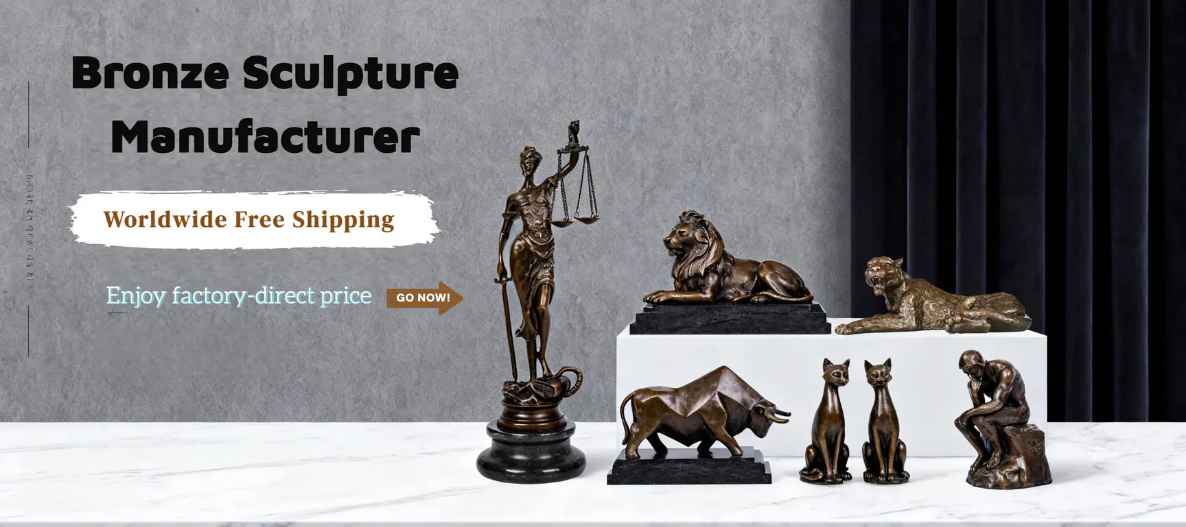 We are a factory-direct bronze sculpture brand with over 20 years of craftsmanship experience. Combining traditional casting techniques with artistic design, we offer more than 3,000 original sculptures for home decor, collectors, and art lovers.