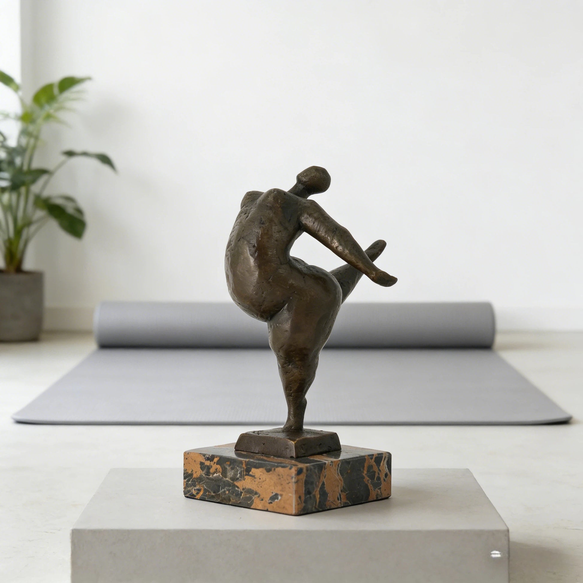 The exaggerated proportions and fluid contours emphasize movement rather than realism, inviting the viewer to feel rhythm, tension, and release. Hand-finished bronze surfaces retain subtle textural marks, allowing light to interact naturally and highlight the sculpture’s depth and warmth.