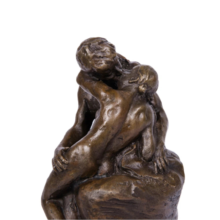 This bronze sculpture is inspired by The Kiss, one of the most celebrated love-themed works in Western sculpture history. The composition captures an intimate moment between two figures locked in a tender embrace, conveying passion, vulnerability, and emotional intensity through natural body movement and expressive anatomy.
